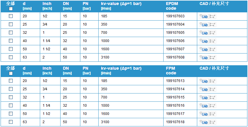 閥門個別配置(參見表格)