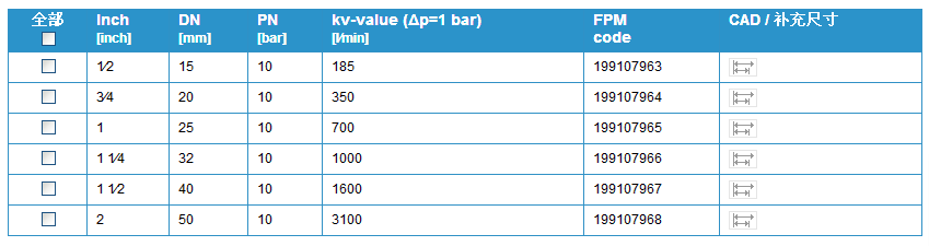 閥門個別配置(參見表格)
